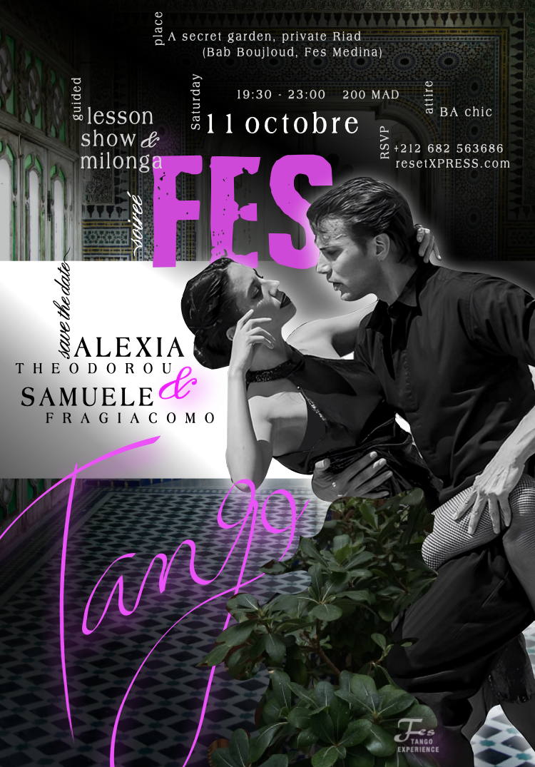 Alexia returns to Morocco with special guest Samuele Fragiacomo for 2 intimate evenings of tango with show and milonga …